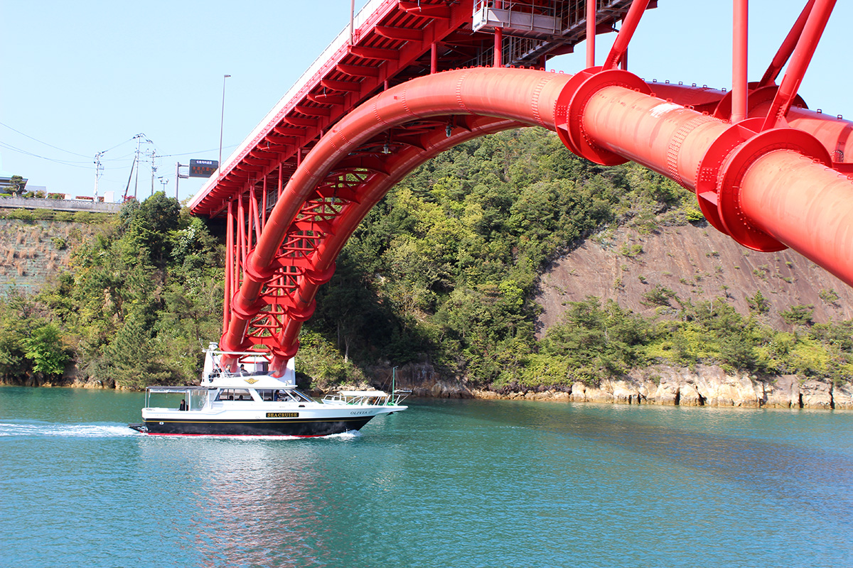 天草には大小120あまりの島々が点在し、その中でも特に天草五橋の天門橋(1号橋)から松島橋(5号橋)までの国道266号線沿いは天草パールラインと呼ばれています。ゆいの旅では、水戸岡鋭治デザインの貸切クルーザーで天草松島の絶景を爽快に巡る船旅をお楽しみください。