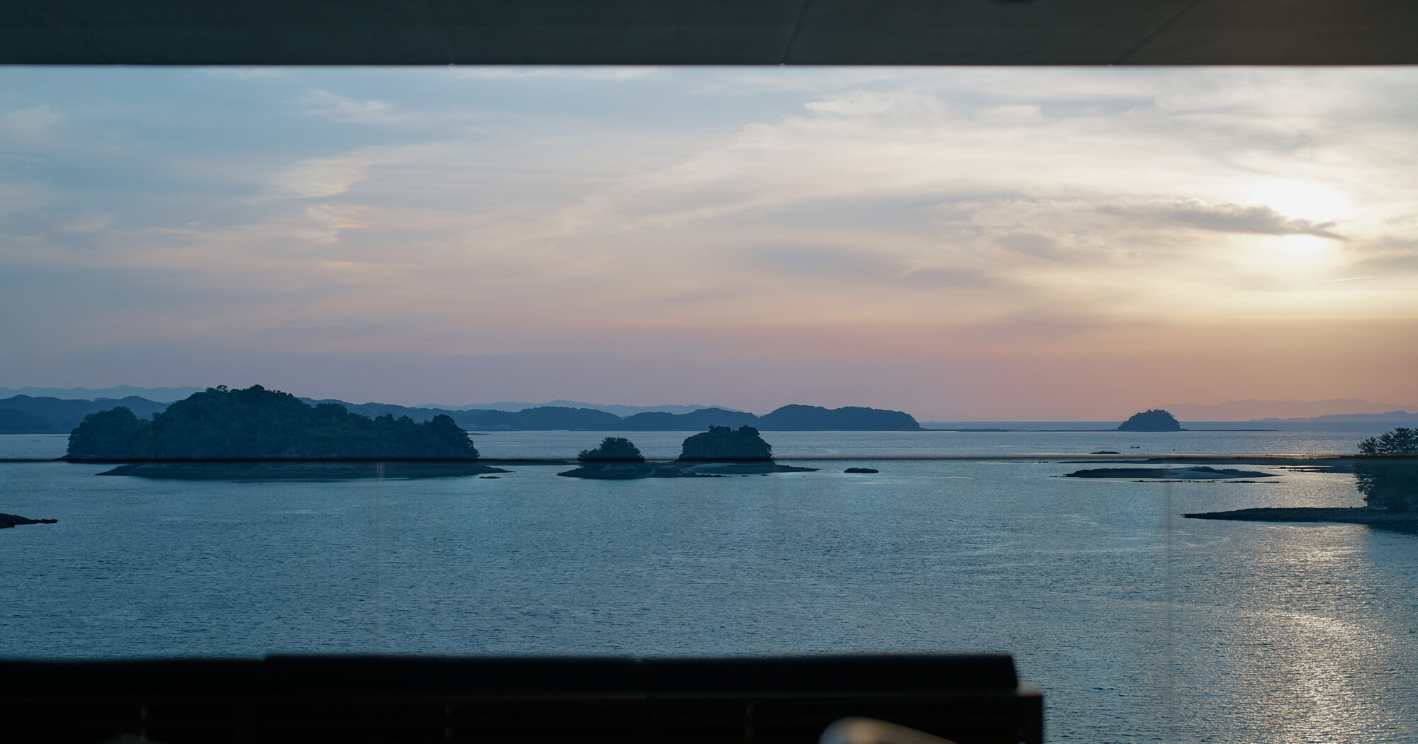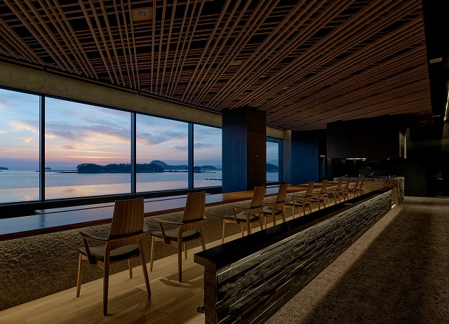天草松島の多島海を望む、10席のカウンターと7室の個室で四季折々の海の美しさを楽しめます。