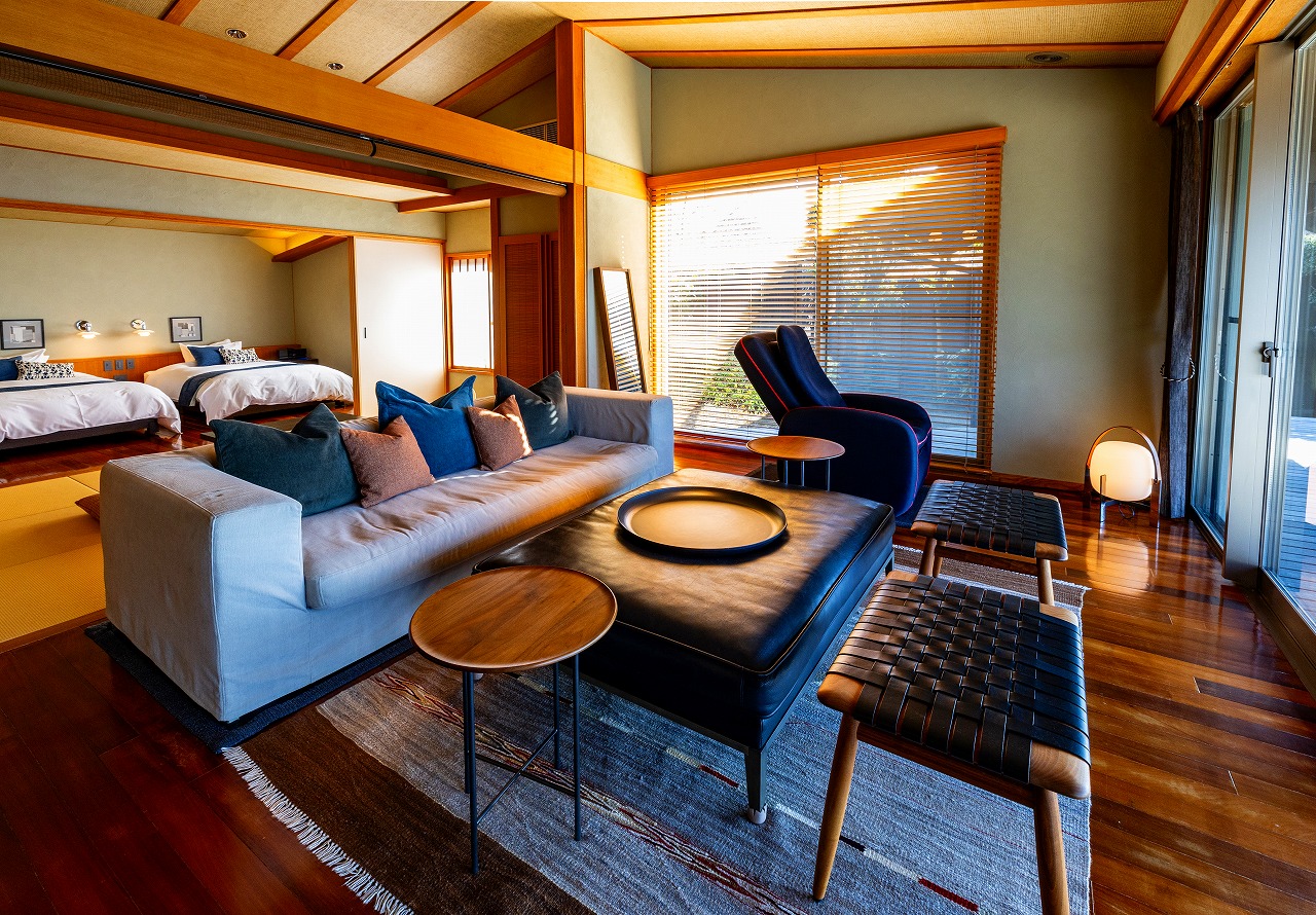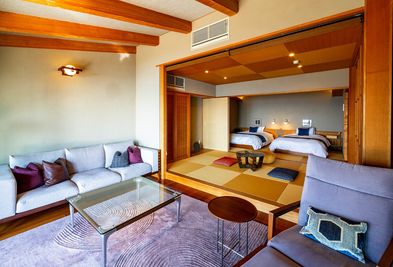 全てのお部屋に「白砂の湯」を源泉とした温泉露天風呂付きで、ゆったりと湯に浸かり、穏やかなプライベートの安らぎをお楽しみいただけます。そこにある雄大な自然を、ただひたすらに眺めるという贅沢をご堪能ください。