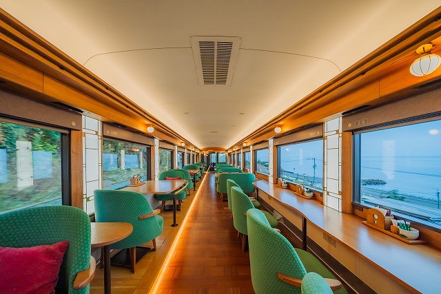 車窓から穏やかな伊予灘の海を間近に眺めながら、地元の食材を活かした昼食を堪能することができます。