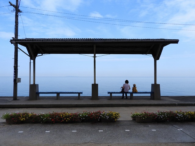 途中停車する「下灘駅」では、海が間近に広がる絶景を望むことができます。