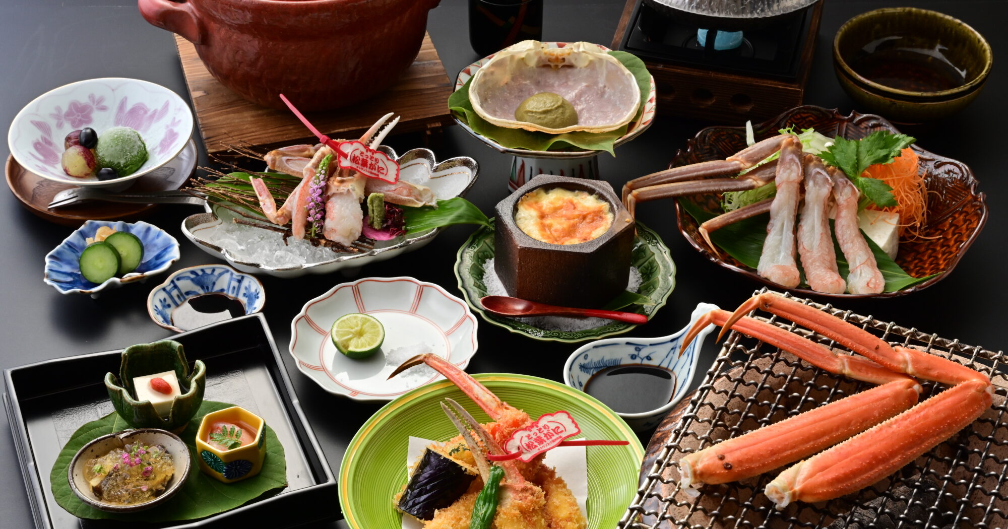 タグ付き松葉がにを使用した、真結オリジナルのかに会席をごゆっくりお楽しみください。