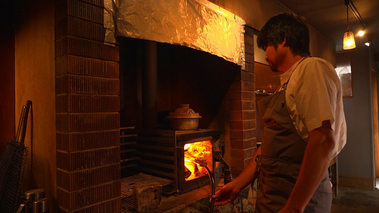 「丹後の土地」「薪火」「唯一無二の料理人のセンス」の掛け算が生み出す料理。料理の加熱の9割に使われる「薪火」という目に見える火のエネルギーを感じる時間。吉岡氏が選び抜いた設えと器で、奇をてらわない、店名の通りに旬の「魚」と「野菜」をご堪能下さい。