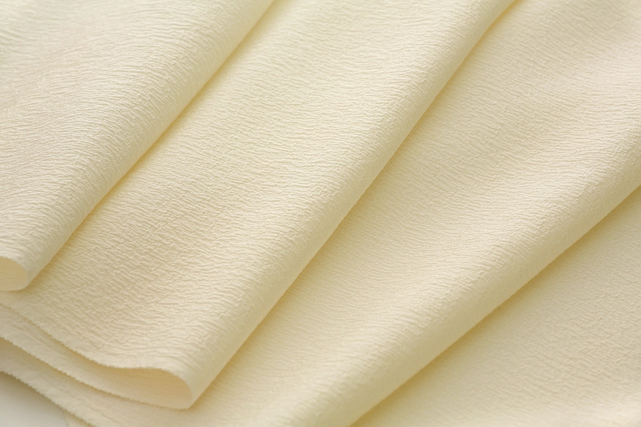 精練する工程により、緯糸の撚りがもどり、はじめて手触りも柔らかな、ちりめん独特の凹凸感をもった風合いの良い純白の絹織物になります。