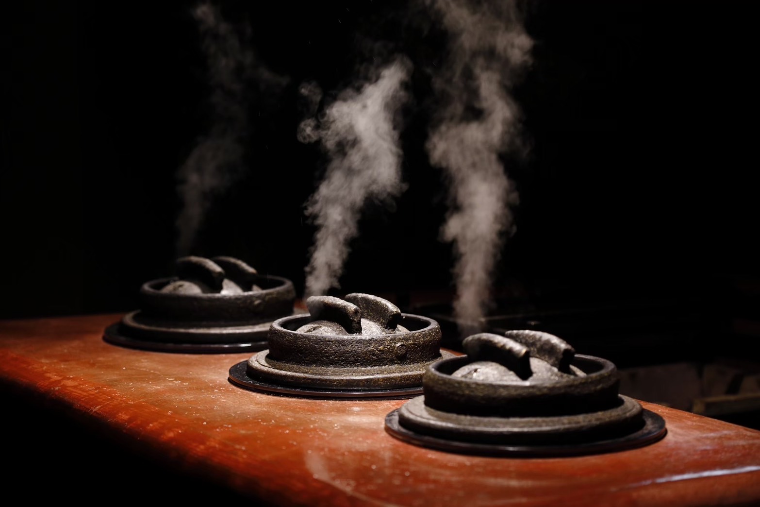 奈良市新大宮にある「五感 魚銀(うおぎん)」は、ミシュランガイド奈良に4年連続でミシュラン1つ星を獲得している日本料理店です。旬の魚と奈良の食材の旨みを存分に活かした多彩な料理は、目も舌も飽きさせない一品です。魚銀の料理の主役は“ごはん”。おくどさんで一組ずつ炊き上げるごはんは艶があり、最高の粒立ちでふっくら濃厚な旨みを味わうことができます。炭火で焼き上げる食材の香ばしい香り、おくどさんから吹き上がる蒸気の臨場感も、料理とともにお楽しみください。