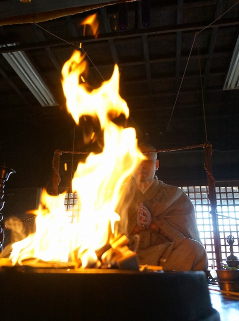 その後は数組がやっと入れるほどの通常非公開の不動堂にて、護摩祈祷にご参加いただき、護摩木に健康や厄払いなど、願いや思いを自分の言葉で書いて、南都修験の作法により願いを届けていただきます。
