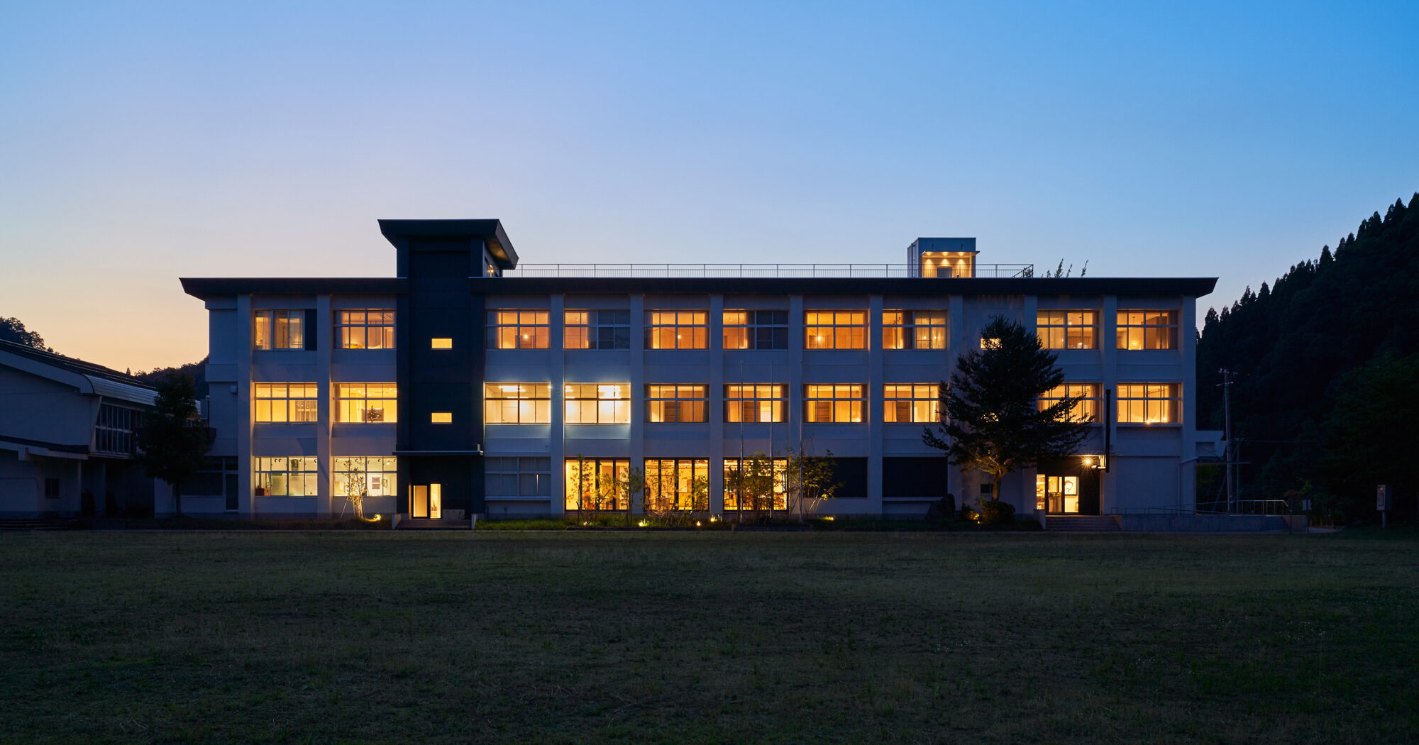 半世紀にわたり集落の風景を担てきた小学校校舎は、建物のシルエットや素材はそのままに面影を残しながら客室として再構築。図書室はスイートに、教室はジュニアスイートに生まれ変わりました。