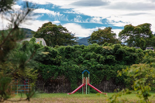 美しい里山の風景の中、日本遺産に認定されるほどの美しい“石の文化”が根付く観音下町に位置する「旧西尾小学校」。