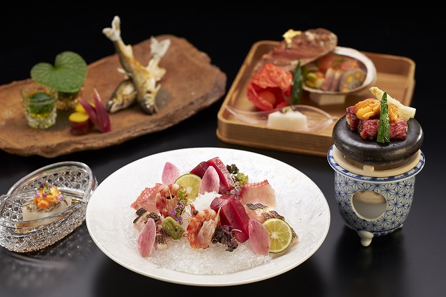 落ち着きのあるレストランでは、選りすぐりの旬の素材を使って作られる、盛り付けも美しい“本格懐石料理”がお愉しみいただけます。