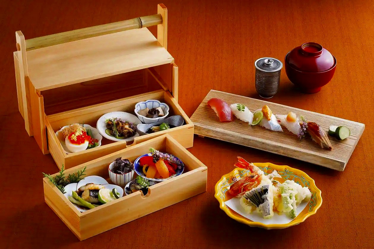 淡路島の由良港で水揚げされた新鮮な魚介や旬の食材を使用した握り鮨、天麩羅をご賞味。目の前に広がる播磨灘の美しい海を眺めながら音楽家による生演奏と一緒にお楽しみください。